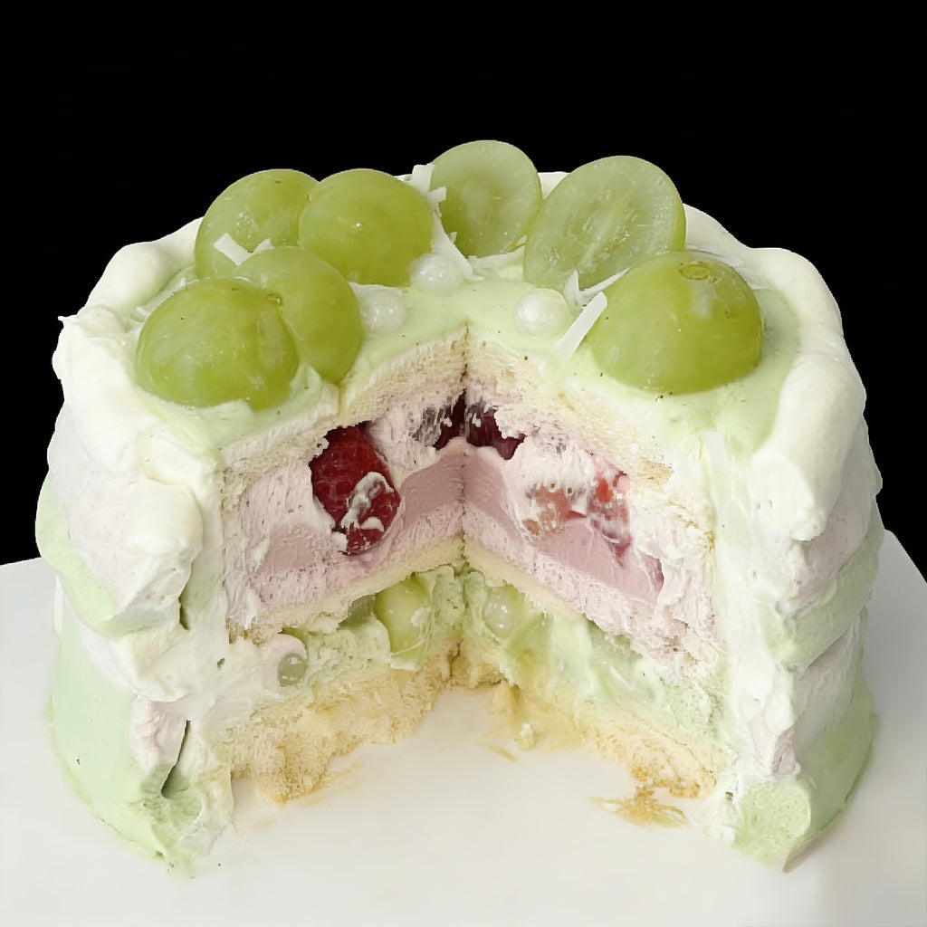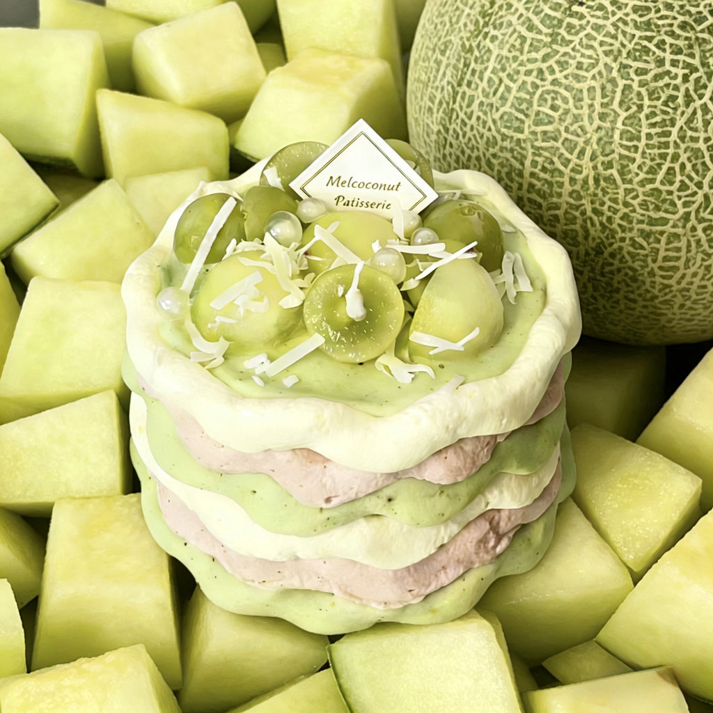 Oil Painting–Inspired Honeydew & Raspberry Chiffon Cake 油画蜜瓜