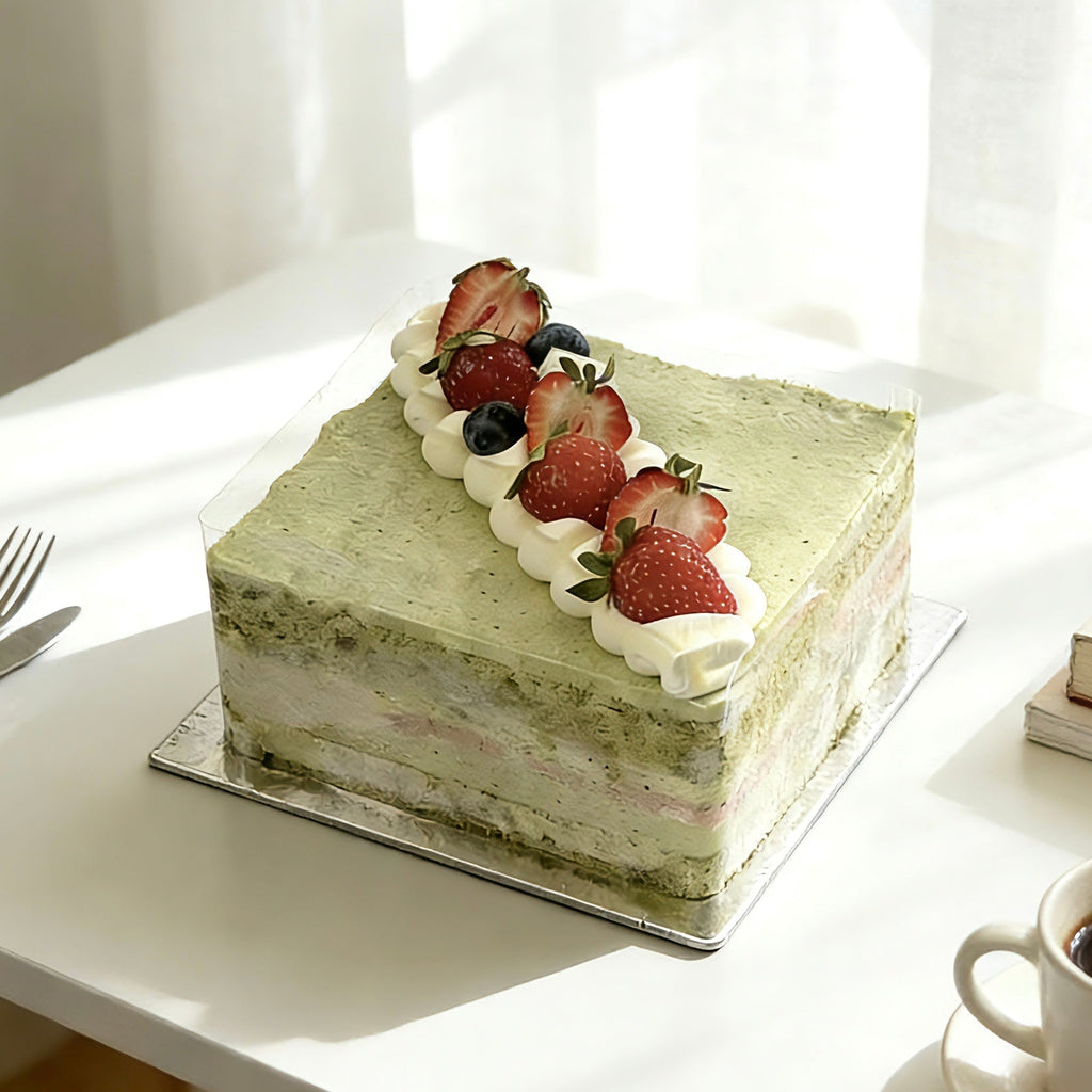 Layers of pistachio dacquoise, housemade pistachio cream, and raspberry cream come together in this flourless cake for a refined balance of nutty richness, airy texture, and fruity brightness.